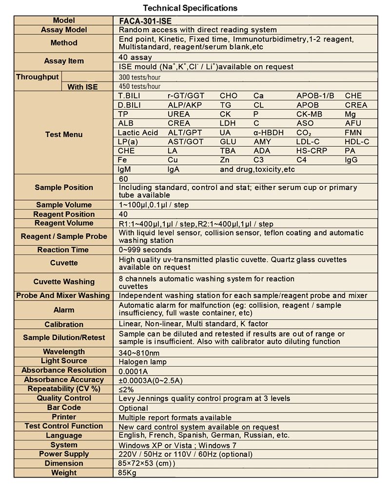 FACA 301-ISE (Electrolyte Tester and Analyzer)