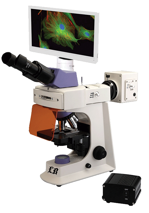 LB-1750 Compound Digital LED Flourescence Microscope with Wide Field, Infinite E-Plan Achromatic Objectives, Mechanical Stage, and HD LCD Digital Camera (6.0MP)are used to study the absorbing, transportation, chemicals distribution and positioning in cells. They are widely used in disease examination, immune diagnosis and life science areas.