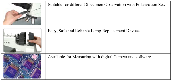 LB-400 Trinocular Industrial Inspection and Integrated Circuit Inspection Microscope with Extra Wide Field and Infinity Plan Optical System (Infinity Color Corrected System) is specially designed for precise industrial inspection. It adopts an Infinity optical system and long working distance high-power objective lens. It provides an outstanding optical performance and available to IT industry, large-scale integrated circuits, chips observation and testing. It is stable, easy and comfortable to operate.